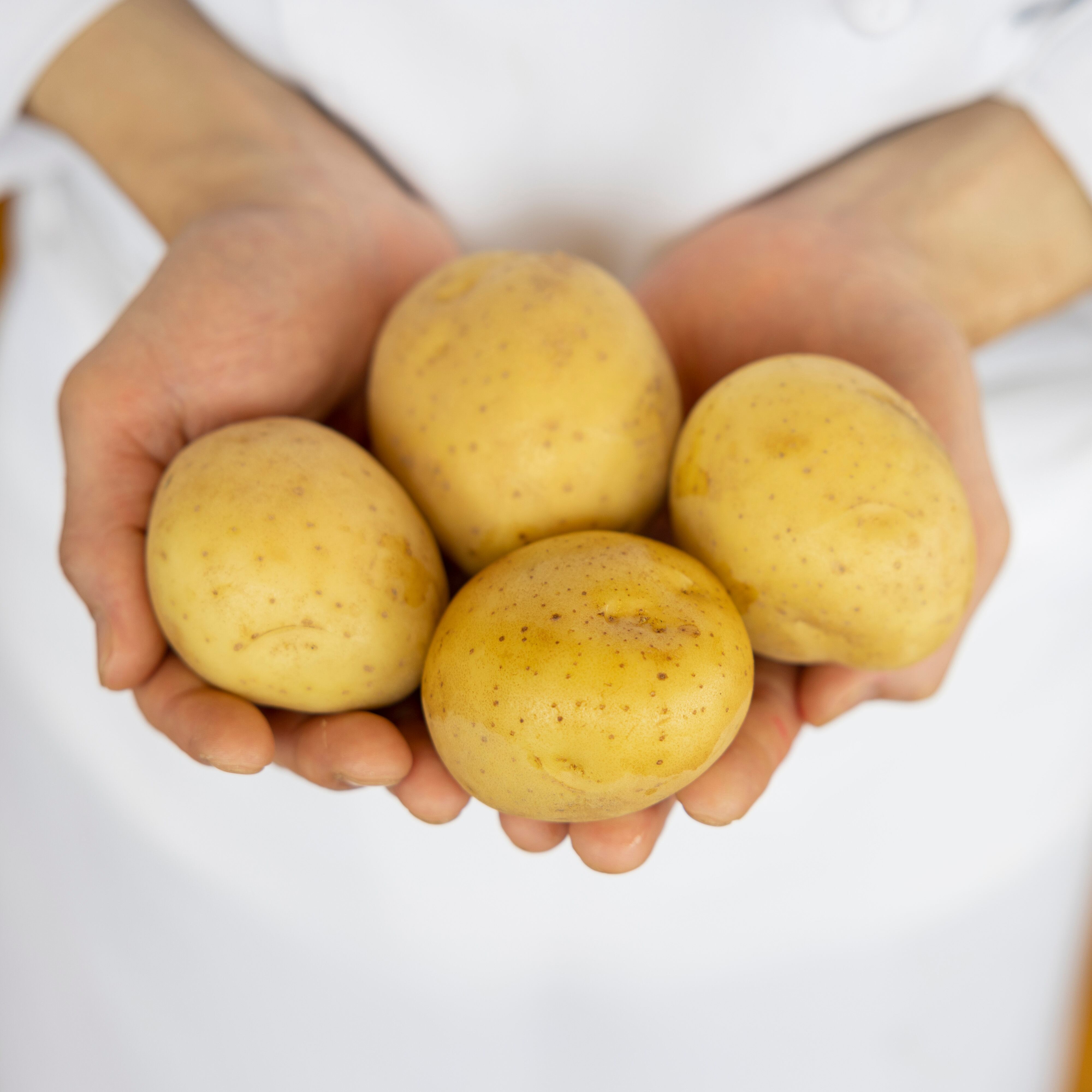 美瑛産じゃがいもの美味しさを活かしたポタージュ。今年はえぐみの少ない「さやか」を使用。美瑛産の玉ねぎ、特製チキンブイヨン、生クリームを加えてなめらかな食感に仕上げています。